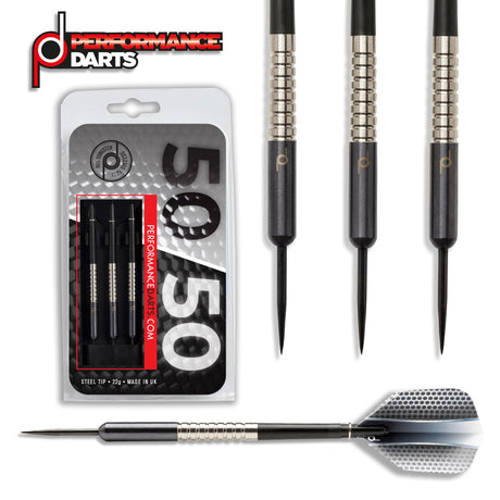 50/50 Black - Silver 90% Tungsten Steel Tip Darts by Performance Darts